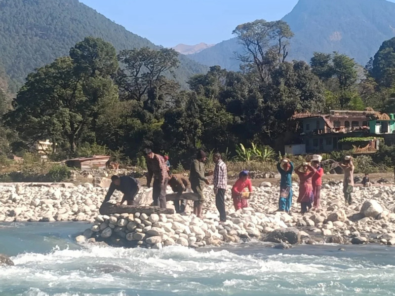 उत्तराखंड: पुल न बनने से परेशान महिलाएं खुद कर रही हैं भागीरथी नदी में अस्थायी पुल का निर्माण |