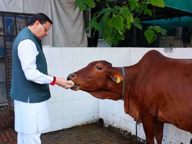 मुख्यमंत्री धामी ने गोवर्धन पूजा पर गौमाता की पूजा कर संरक्षण का संकल्प